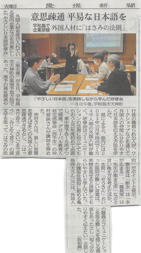 12月8日宇和島にある南予地方局にて、「やさしい日本語セミナー」が開催されました。